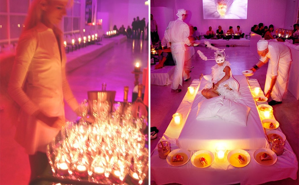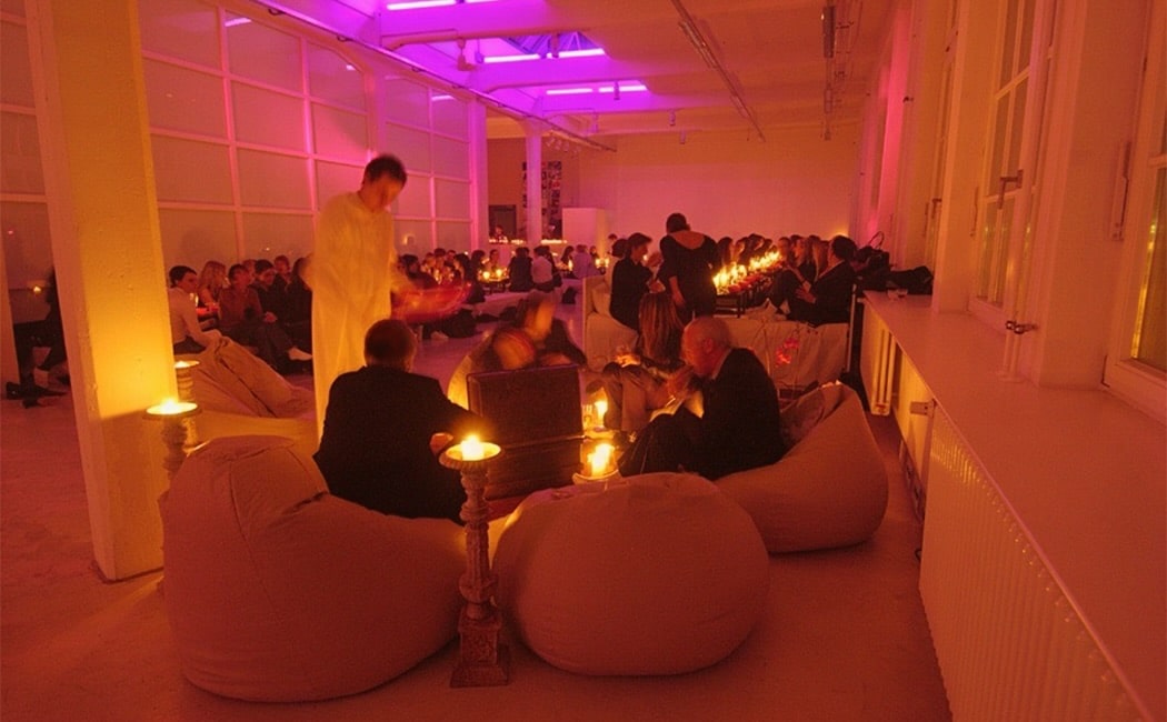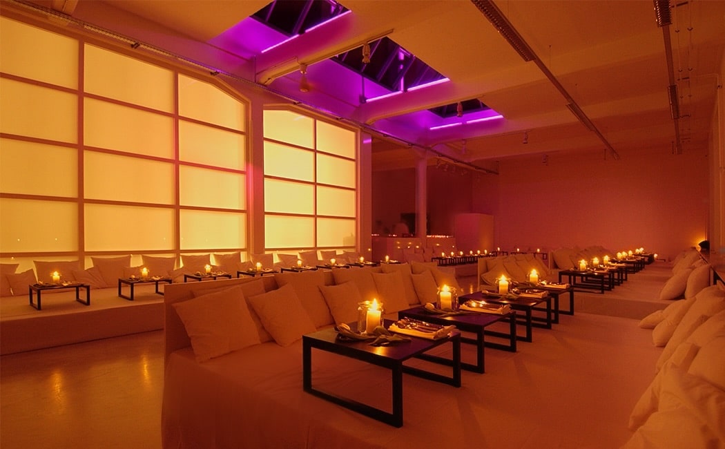 Mit diesem Anspruch verwandelt ihr Designteam allmonatlich das 630qm-Loft-Atelier mit Riesenbetten in eine weiße Wellnesswelt zum Entspannen und Geniessen eines kreativen Vier-Gang-Menüs untermalt mit inspirierender Musik und energetisierenden Massagen.